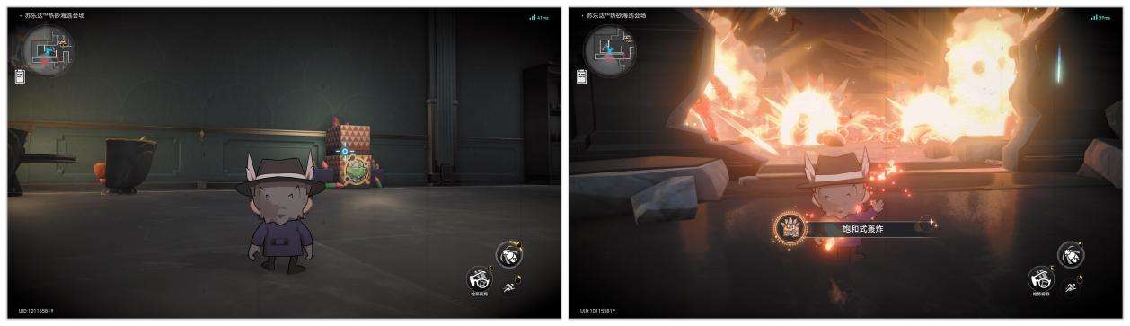 6、先攻击前方的烟花将墙炸开,然后重新去拾取火箭筒,等巡逻的敌人靠近后再次攻击烟花,一次性将5个敌人全部消灭,同时获得成就“饱和式轰炸”,然后进入内部空间拾取宝箱获得第二章,如果你之前的9本已经收集完了,这里则可获得隐藏成就“再见,哈努努”。