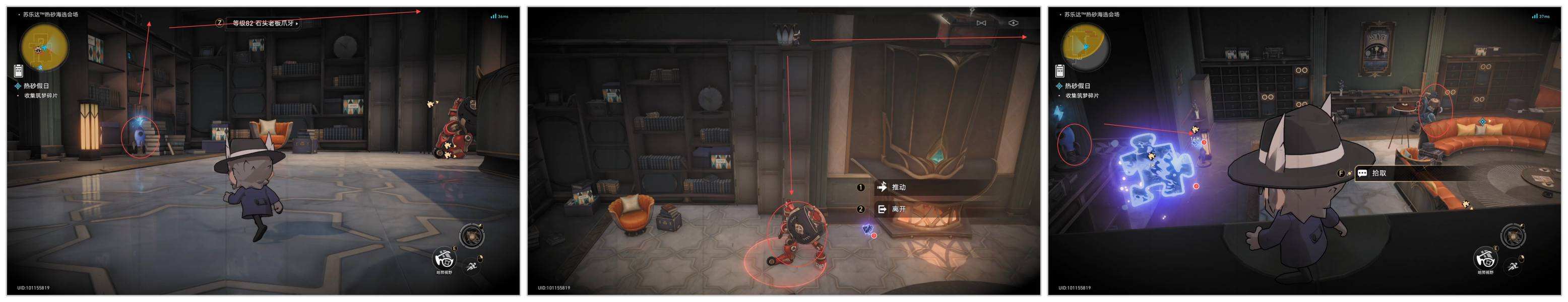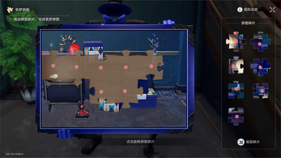 2、和拼图触发对话,然后要求去收集三个拼图碎片: