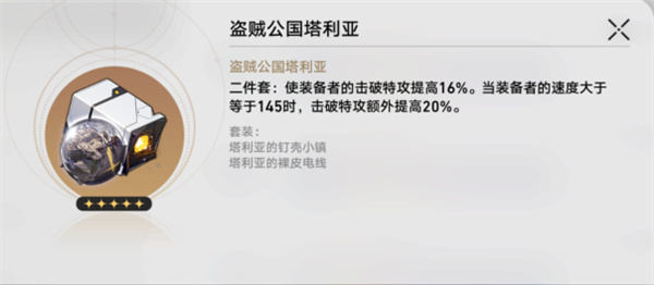 3、第四世界掉落的“盗贼公国塔利亚”套装,在目前只有同谐开拓者优先携带的情况下总体刷取价值仍较低,合成即可。