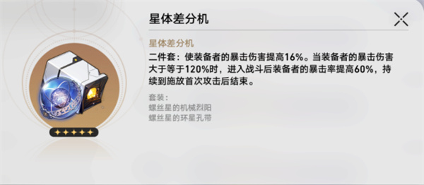 6、第五世界掉落的“星体差分机”套装目前没有太多的使用空间,可在姬子、黑塔等角色锄地时携带用于提高斩杀线,加快清怪速度。
