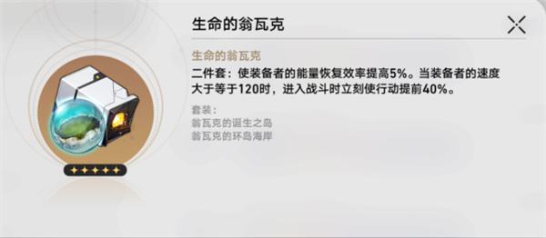 4、第四世界掉落的“生命的翁瓦克”套装按需使用即可,目前仅推荐知更鸟优先携带该套装,其余角色在一些特殊情况下使用会有不错的效果。