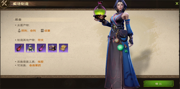 功能:选择炼金生活技能,将可以制造药剂、合剂、纹章等物品,增加个人与团队的作战能力。除此以外,还可以制造符文,用于为装备赋予属性提升效果。