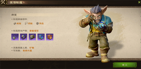 功能:选择珠宝生活技能,将可以制造项链、戒指、饰品部位的装备部件,并可以制造装备宝石,将其镶嵌在宝石槽位上,可以提升人物属性。
