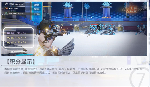 积分会实时显示。这里比较重要的是AOE造成的同时击杀还有1.2倍的分数。从各种性质来说都最好使用AOE能力较强的角色。