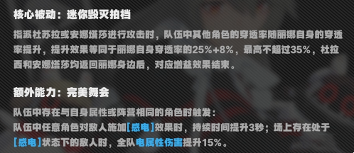 3、丽娜的连携、支援攻击、强化特殊技能提供6s左右的穿透率加成,刚好够打鲨鱼的连携+2段强化特殊技+终结技,丽娜优点是动作快、多种手段灵活上增益,但是穿透率没有叠超过50%的时候收益太低,且丽娜很吃自身穿透率面板。