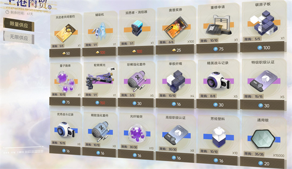 辅助机为本期活动限定的收藏品,可以作为陈设放在基地中。目前活动收藏品没有复刻过,建议入手。消焰器是双持冲锋枪的配件,由于是新的武器类型配件较少,建议抽取里芙-无限之视的玩家尽快换取。同理限量供应的1个轮转辉光对于抽取里芙-无限之视的玩家来说也是必换的,抽取过专武的话也需要这把武器的配件,没抽取专武的话这把武器则是仅有的选择。