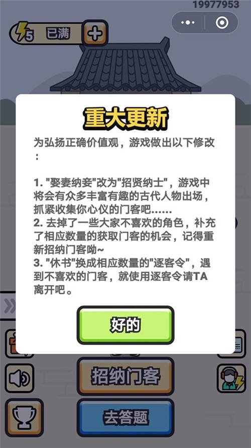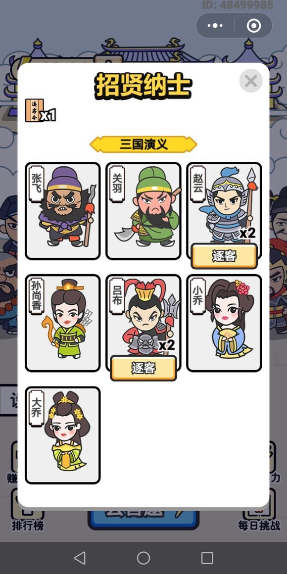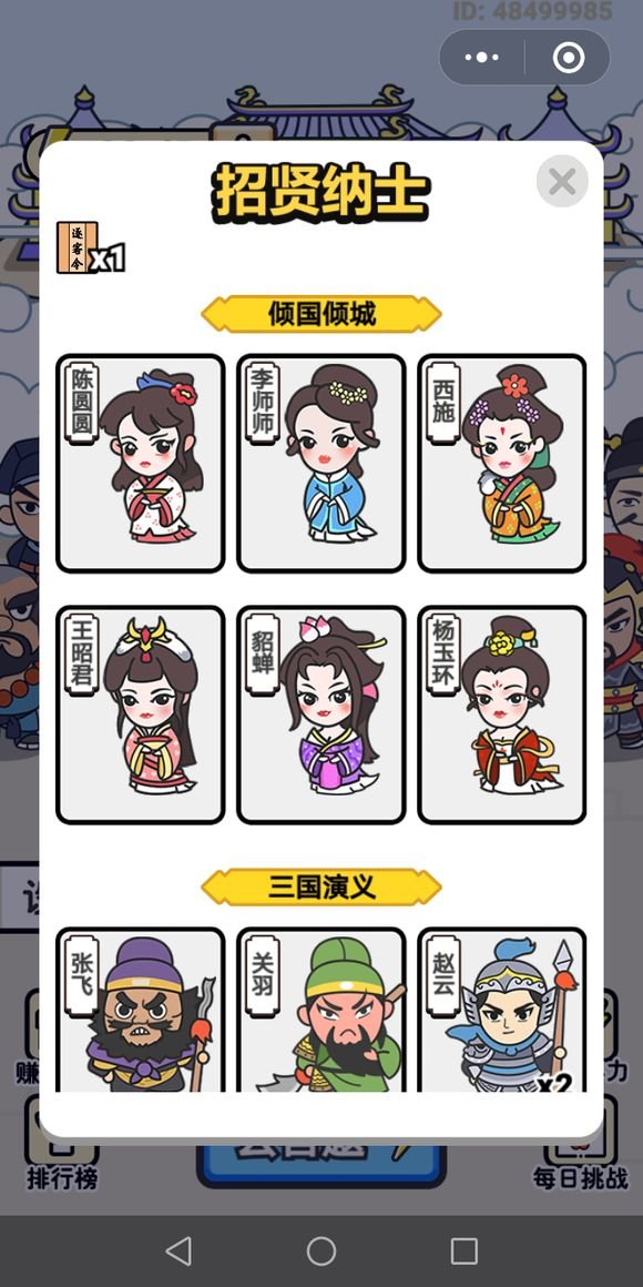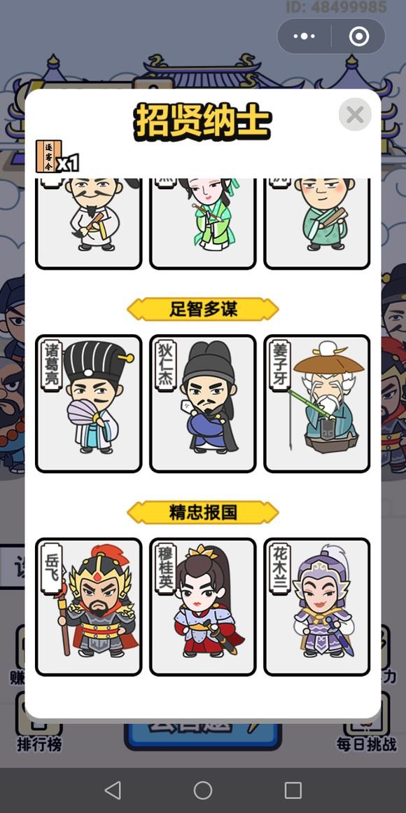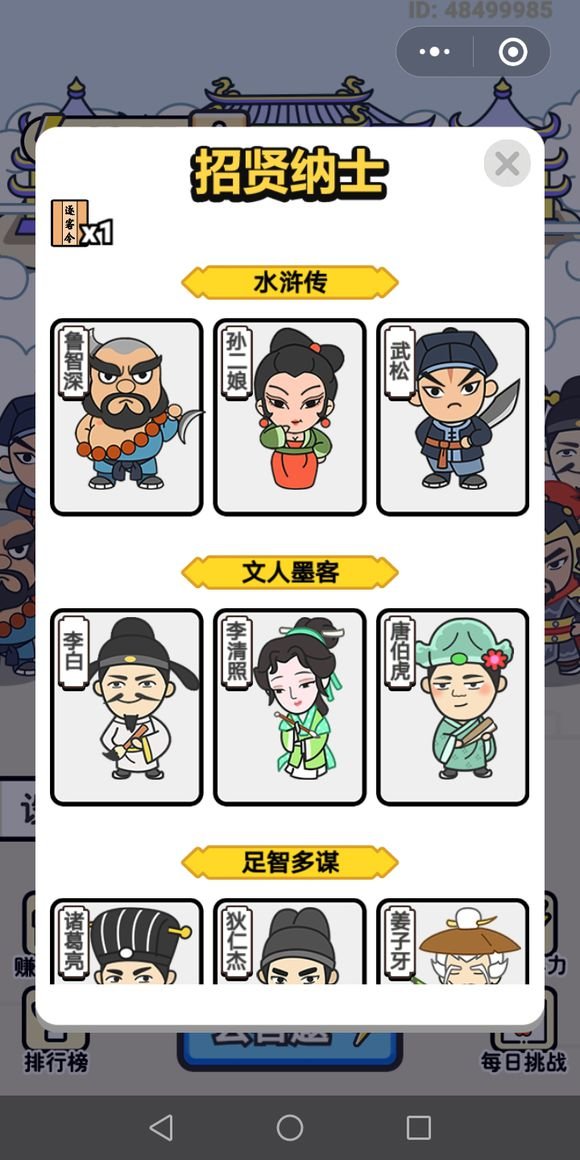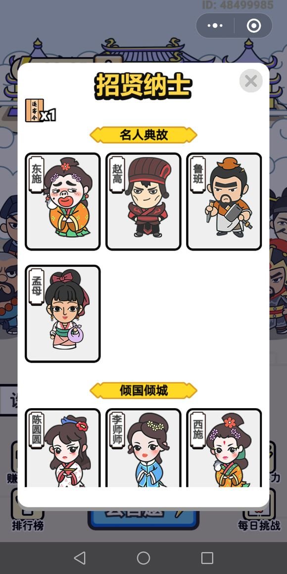微信小程序成语小秀才这款小游戏的玩法很多,最近更新后把“娶妻纳妾”改成了招贤纳士,这个招贤纳士新玩法很多玩家不知道这个有什么用处,其实就是你会邀请一些古代名人异士来你家做客,下面把成语小秀才招贤纳士的作用给大家讲解一下。