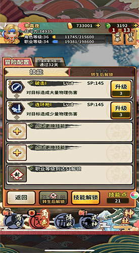 游戏大玩家友们的人物等级提升到一定程度并攻略到指定关卡后,就能解锁人物职业,在鬼武者、阴阳师等众多职业中选择一个进行就职。有了职业后,大家将迎来一个最重要的战力提升手段:职业技能。通过升级技能、根据关卡更换不同的技能等方式,玩友们能获得长足的提升,对于新手玩友来说是需要优化掌握的。