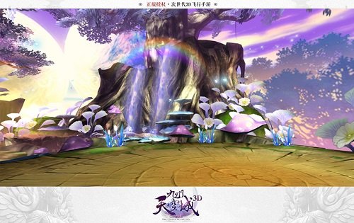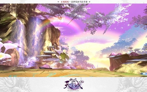 《九州天空城3D》全新地图蝴蝶谷正式开启!一条笔直的瀑布,从山上直泻下来,溅起翻腾的水花;半空中,七彩斑斓的彩虹,好似一座座彩虹桥,浪漫唯美;蓝色的、粉色的蝴蝶缠绵飞行,围绕在山水之间,一副美妙的画卷就此展开。
