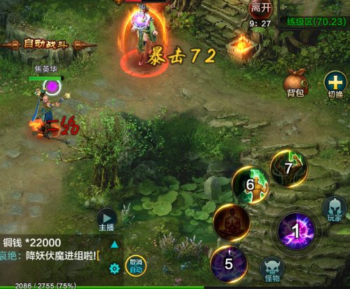 点击自动战斗,即可享受挂机打怪的乐趣了。