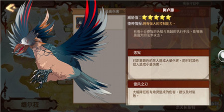 阿卢那以一只巨鸟的造型出现,威胁值极高,诡异的五彩羽衣放佛有特殊加持,它拥有强大的控制能力。与外表的动物倾向相反,阿卢那有着可能比起人类都毫不逊色的智慧,并且能够施展强大的法术攻击,有着十分高超的执行手段。