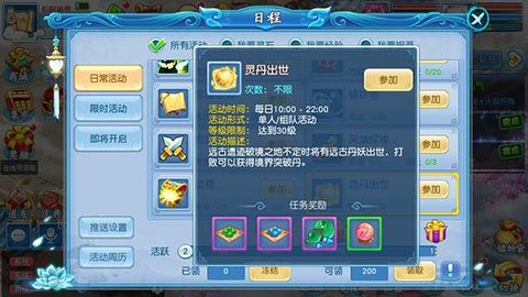 打开“日程”,点击参加灵丹出世。