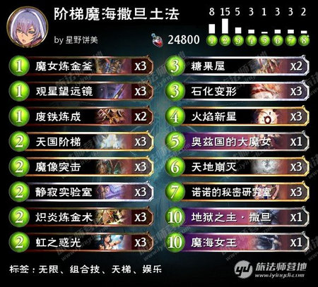 这个3牌组合技非常有趣,但如果魔海和撒旦的用量过少,组件上手率将难以保证,而如果携带太多魔海和撒旦,身为10费牌的她们又容易导致卡手。为了解决这个两难问题,保证10费准时起动组合技,同时最大限度的降低卡手概率,今天介绍的这套牌选择了特化型构筑——用天国阶梯检索组合技组件。