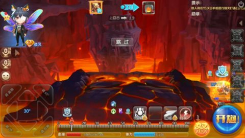 1、如图,开局使用飞机道具飞到boss的左边(如果没有飞机就手动删除一个无用的技能看看能否刷到飞机技能),boss在你飞到它左边后会自动往右边爬,我们的最终目的就是把boss挤到地图最右侧那里跌死。这里注意蓄力要比推荐白线小一格左右,不可以太靠近白线,否则boss会往左边爬。