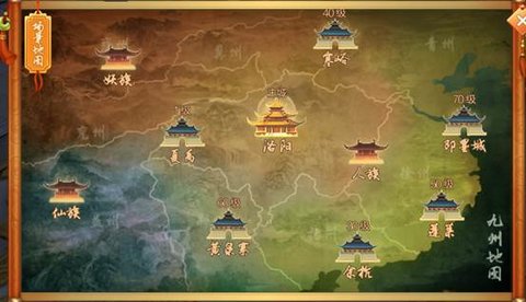 九州中,豫州位于中部,夏禹镇、洛阳在豫州,豫州鼎娘为玉瑾;扬州位于南部,紧贴荆州和徐州,余杭在扬州,扬州鼎娘为彩画;荆州位于扬州旁,黄泉寨在荆州,荆州鼎娘为潇洛;冀州位于北部,寒峪镇在冀州,冀州鼎娘为央曦;青州位于东北,青州鼎娘为妩眉;徐州位于东部,徐州鼎娘为陌伊;雍州位于西北,雍州鼎娘为暮颜。益州位于西南,兖州位于正南。