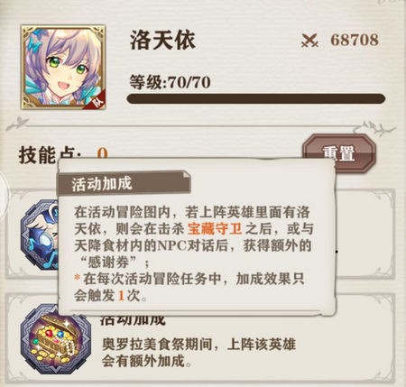 经测试打宝藏守卫带洛天依会触发掉感恩劵和经验书;带维多利亚会触发掉蛋。