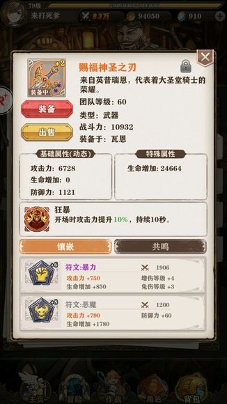 第二种神圣之刃开场10秒提高百分比攻击由于我这把武器出的少强化不高,不清楚提升数值,有没有高强的大佬提供图片。。这把武器推荐给前期英雄使用,可以把10秒加攻的效果最大化。