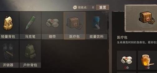 2、绷带,医疗包都可以加血,分别是26级和32级解锁,所需材料是,麻布和蜂蜜。