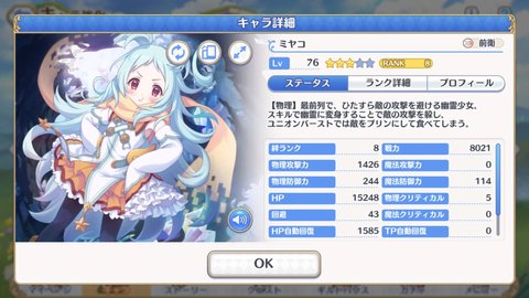 特点:连续第三次对魔法队的平衡。后卫版姬塔,主动技能伤害爆炸,出手速度奇快,大招切T像切菜,生存能力远远高于姬塔。组队时注意妖精不能是队伍中物攻最高的,防止被魔法少女狙到,存活下来是妖精最优先考虑的。