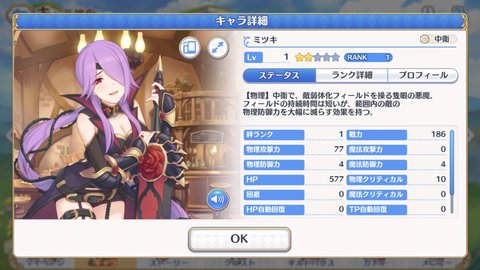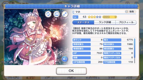 全游唯二主动技能全体回复的角色,主要用于打boss。