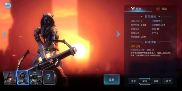 攻击与标准比至少了3点,却对机械250%攻击,虽然没有减速,但减速真的没啥用。。。穿甲打妖族的穿山甲,人族的鸟骑都好用等机械单位,但是。。。再好用也不如喷射。。。2级喷射一枪伤害18点,射速1秒,穿甲25点,射速1.5秒,3秒中喷射可造成54点伤害,穿甲只有50点,喷射上天射程14,穿甲13。。。并且有科技预研的喷射173一个,没预研的穿甲200一个,喷射在伤害射程射速价格上都胜于穿甲。。。并且喷射可以欺负不能对空的兵种,穿甲么。。。不过如果对面出鸟骑加鹰眼,穿甲比喷射好,你喷射一上天直接被鹰眼打下来。