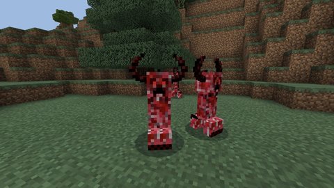 在装载手游组件《恶魔爬行者》后,苦力怕变身成了恶魔苦力怕!恶魔苦力怕浑身通红,长着一对吓人的恶魔角,如果被闪电击中,它们还会进化成更强力的怪物——闪电恶魔苦力怕!