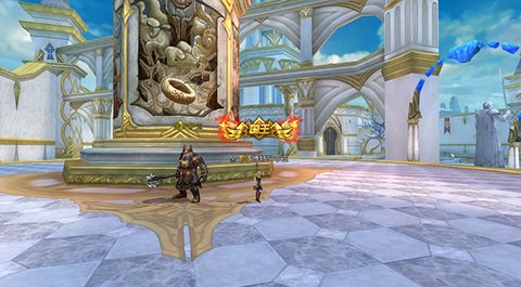 2)防守方的第二道防线是位于两侧的【国王西卫】和【国王东卫】,分别在王城的东西两个平台上,他们职责就是守护国战中系统国王。当2个护卫归属于防守方时吗,会分别给予系统国王增加50%减伤BUFF。(也就是说当2个护卫都属于防守方时,国王会处于免伤状态)所以,两侧都需要重兵把守,全力延缓进攻方击杀我方护卫,以保证国王的下血速度。