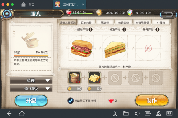 想必所有人都有过因为奶妈罢工或者是带错卡组而濒临死亡的情况,而这时候一个三明治就可以救活你的命;在你需要提升属性数值时,料理也可以帮助你提升些许的暴击和暴抗。在玩友的等级到达40之后,职人系统就会开启。在职人系统里,你可以制造做装备所需的模组,可以提升属性的料理等等。