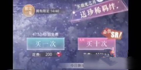 *一次性购买十个微光之月至少可以获得一张SR(含以上)羁绊