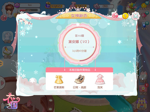 每周固定时段《衣之国》会开放「女神的新衣」物资竞赛活动,游戏大玩家友角色达到14级以上就可以参与了。相较「女神之战」,「女神的新衣」火药味也十分浓烈,因为终极奖励是非常罕见的服饰,倘若拥有它就可以在「女神之战」的PK中一战成名,是女生们进军时尚界必须参与的一项重要活动。在「女神的新衣」规则中,玩友需要通过提交活动所设定的物资(也就是服饰)来换取积分,解锁前任女王冰冻的魔咒,获得更多的奖励。