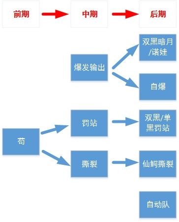 7.请注意队伍的功能的齐全:苟型,磨血型(撕裂、中毒),罚站型,爆发型,AOE型,加血/护盾型,等。