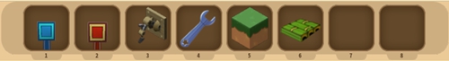 工具准备:蓝色电能线、红色电能线、推拉机械臂、扳手、草块、生物感应器