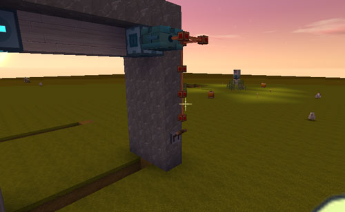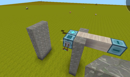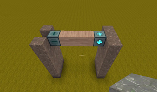 2、继续把门搭建好,记得把减号方向空一格位置出来,否则无法滑动哦,中间的滑块用方块连接,不能再用岩石咯~