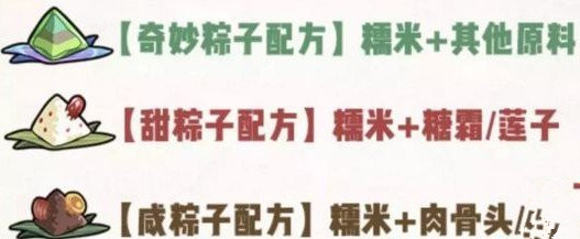 获得的糯米和材料,可以在【牧场的妮娜处】,兑换三种粽子:甜粽子、咸粽子、奇妙粽子。
