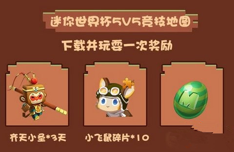 ④ 下载并玩耍存档【迷你世界杯5V5】,可领取:齐天小圣*3天、小飞鼠碎片*10、迷你豆*60。