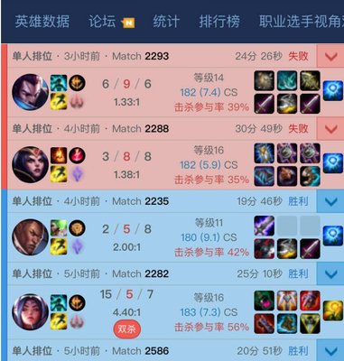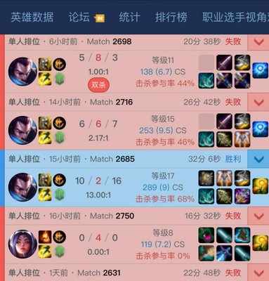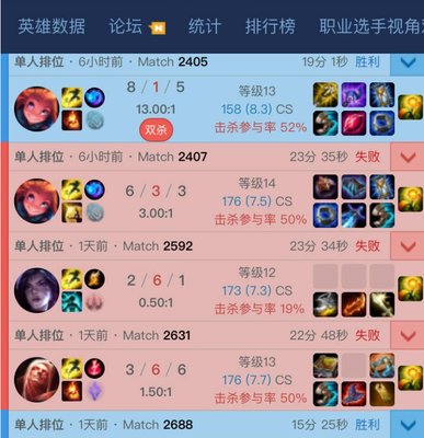 咖妹则是一路连胜,岩雀,赵信,奥拉夫,腿女,希望在赛场上也能看到咖萨更好的表现。
