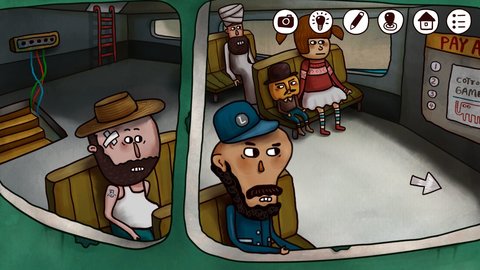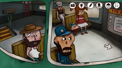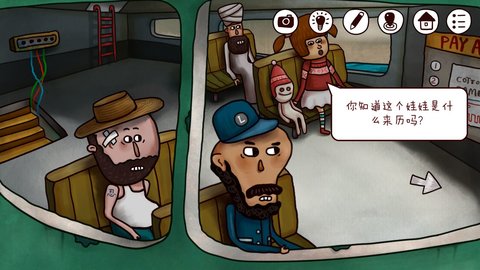 3.退出船舱重进,这时又变成小女孩和娃娃在一起了,和小女孩对话(一定要重进船舱后对话!不要在南瓜先生出现时和小女孩对话),还是到那句话之后停下,然后重进船舱,同样大约五次后发现小三角,点小三角发现另一个成就