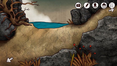 点击左下角的箭头,你开始继续自己在小岛上的旅程。在向下行进几步之后,细心的你发现这里有一株高大的树,在粗大的枝干掩映中,若隐若现的是一条向上前进的道路,好奇的你决定走近瞧瞧。点击古树