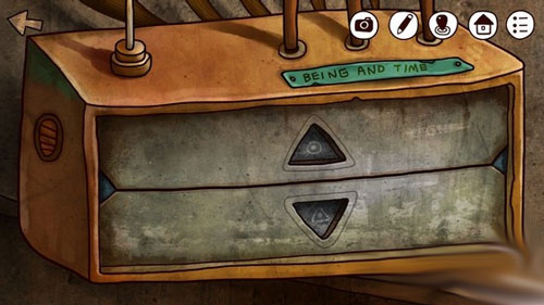虽然好奇,但是生性谨慎的你决定晚一点在出门,不妨先上楼看看老人家究竟在阁楼上鼓捣什么。点击电线连着的机关,在这里遇到手游的第一个机关门。