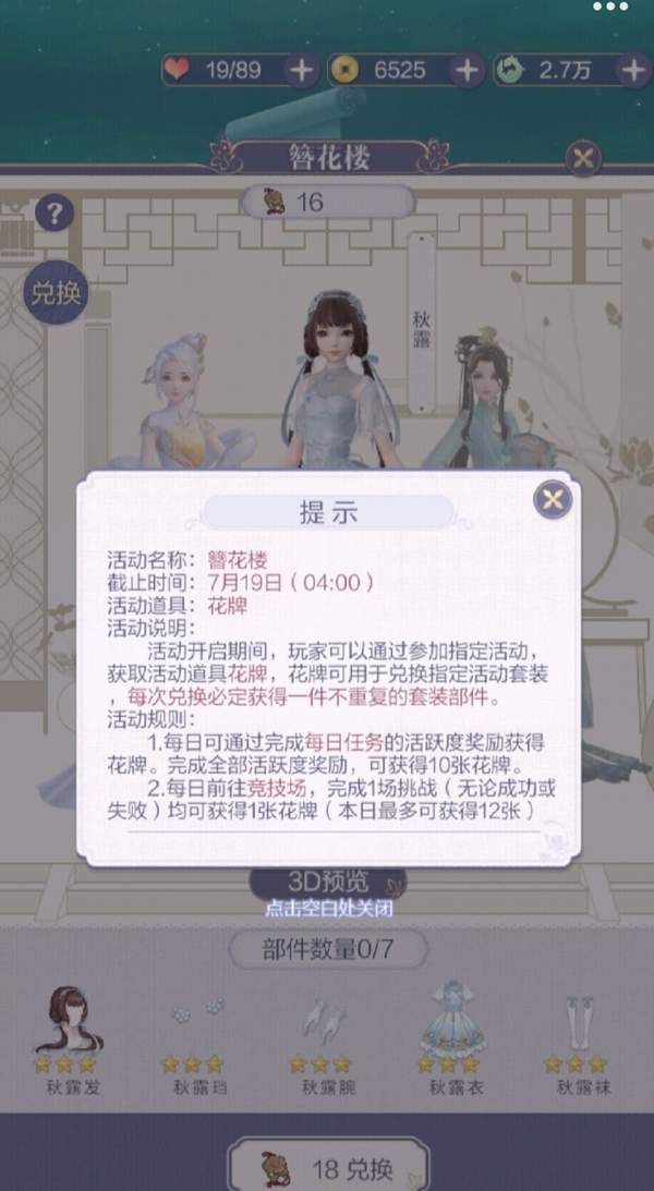 活动内容:每天参与每日任务、半半问答、竞技场、普通评选赛、DIY评选赛,就能获得花牌,即可兑换全新套装【秋露】【凉辰】【百邪】。