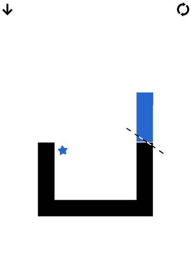 198关的玩法也是比较的简单的,只需要在右边蓝色方块与黑色方块交界的位置从左往右斜着分开就可以了!
