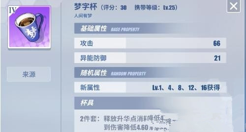 杯具(2件套):释放升华点消耗大于等于6的技能后,受到的伤害降低4.60%,持续1回合。