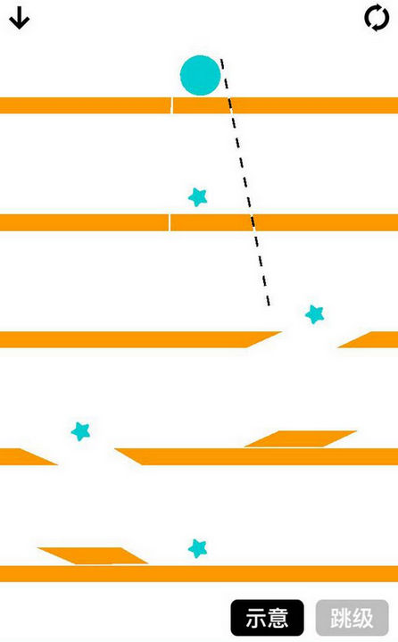 想要通关,我们需要事先计算好蓝色的小球以及小星星的落点,规划好他们的掉落轨迹!