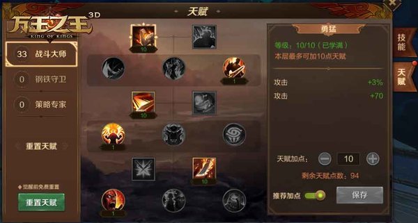 万王之王3D手游斗士天赋加点攻略