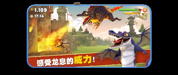 在龙窟内对飞龙进行升级后来到这个魔幻的世界中,S级的龙连捕食小鸟难度都比较大,但在经过升级速度、加速之后,就能快速捕食,延长游戏时间。在捕食过程中,飞龙除了会遇到自己的龙族敌人外,还会在游戏中碰到各种障碍物,如垃圾、炸弹等。