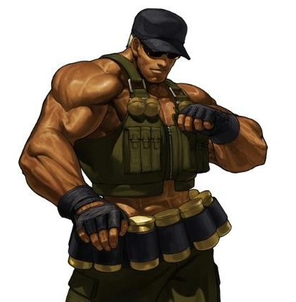 他与拉尔夫在军队里出生入死十几年的兄弟,性格粗犷豪放,与他的格斗技能很相称。自94年就和哈迪兰将军一起参加格斗大会,多年来他们帮助剿灭了卢卡尔集团、抑制住暴走的八神、调查NEST……总之,他跟拉尔夫在执行这些危险的任务时总是冲在最前的。