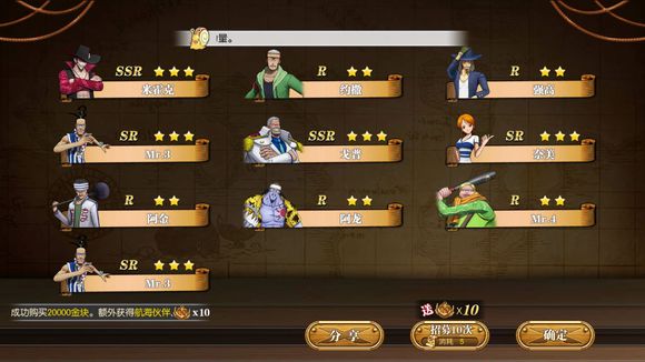 0元党玩家三十次试炼必然可以得到至少一个SSR,对于零元党玩家来说培养一个SSR就够了,多了培养不懂。一般来说艾斯是可以通过活动获得的,当然卡普也比较好得,其他角色可以用山治、乔巴什么的,都很好用。