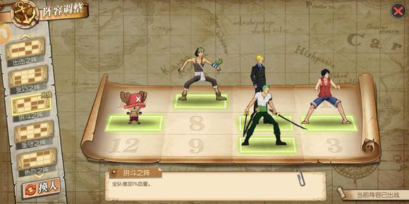 走这个阵。位置安排是输出在中间。山治速度快上来就能给瓦波尔打半血。