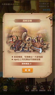 除此之外,各位主公也可以选择在人少的时间段,通过金币收买情报,洞察敌情。这样不仅竞争少,而且洞察出来了都是大将,这样积分获取的难度,相对在固定时间去争夺匈奴大将更稳。