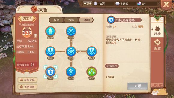 第三页先点抵抗变身修炼,然后点全属性修炼,星阵优先防御和生命